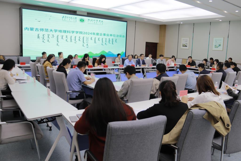 本次会议围绕人才培养、毕业生情况等内容进行了深入交流。beat365中文官方网站院长长安、党委副书记云占成以及各系主任和专业负责人出席会议。内蒙古自治区测绘地理信息中心、北京中勘迈普科技有限公司、内蒙古城市规划设计研究院有限公司、内蒙古遥测地理信息技术有限公司、北京超图软件股份有限公司、内蒙古合众精恒勘测设计有限公司、中测新图(北京)遥感技术有限责任公司内蒙分公司、内蒙古赢彩工程技术咨询有限公司、锡林郭勒盟志同地质信息咨询服务有限公司、南宫市私立丰翼中学等32个企业单位负责人与代表参加座谈会。
