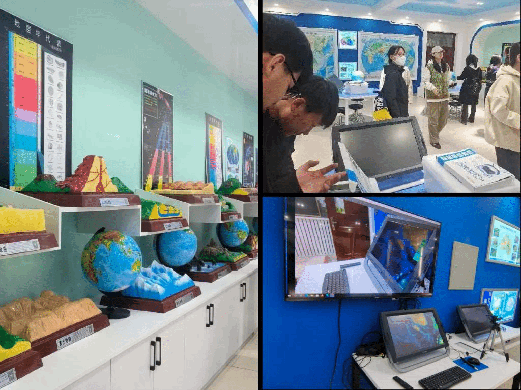 随后,同学们参观了地理教室、科技馆和创客中心。内蒙古师范大学附属中学的地理教室,遵循教育部《中学地理专用教室建设规范》,以数字化教育教学装备为依托,教室置备了数字地球仪、AR地理沙盘、语音立体地形图等数字化设备和各类教具模型,把数字化与虚拟现实技术融入了传统教学。见习生真正领悟了“数学化地理教室赋能地理教学”的重要性,见习生观察到有序的教育和学习环境,从而增强了职业认同感。