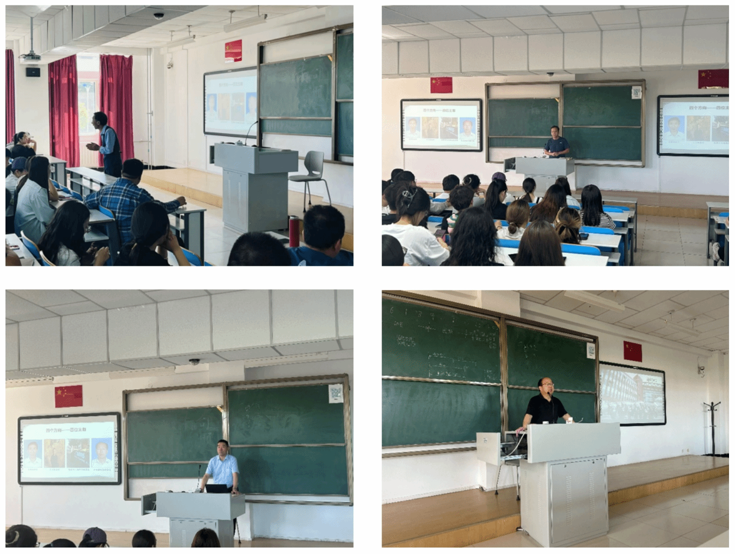 会议刚开始,四位硕士点点长分别对各自的硕士点研究方向予以介绍。先是自然地理学硕士点点长春喜老师向同学们讲解考研规划,着重强调人要掌控时间,抓住机遇,持续进取向前迈进。人文地理学硕士点点长佟宝全老师阐述了人文地理研究中所关注的人地关系、空间效率问题以及中心地理论等研究范畴。随后,地图学与地理信息系统硕士点点长萨楚拉老师详尽地介绍了地图学与地理信息系统中涉及无人机遥感、地理大数据与人工智能等研究前沿及应用情况。在地理科学与教学论方面,常月明老师凭借多年对地理科学与教学论的研究与实践经验,细致地讲述了学科地理硕士研究领域的大致情况以及学科地理方面近些年来的就业态势等。