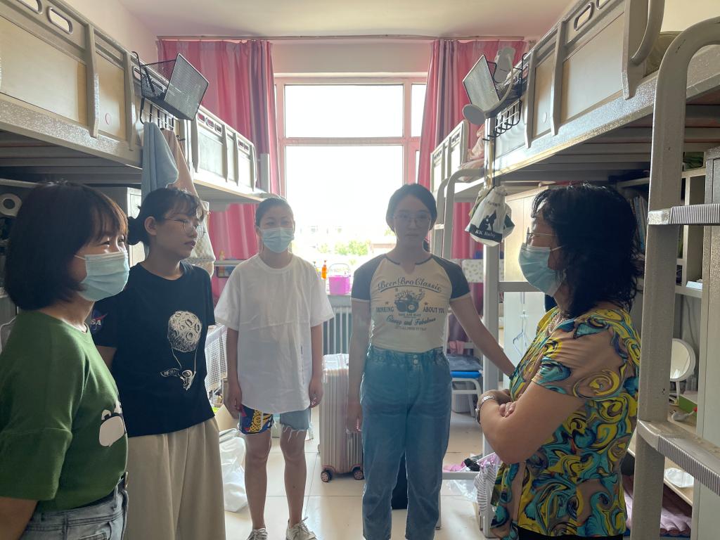 2022年6月19日-20日,beat365第一批毕业年级学生按照错时错峰、自愿返校原则,共计34名毕业生迎来2022学年第二学期返校第一天。学院党委书记张裕凤教授、辅导员孙小雅、奕莉琦、王若冰等代表学院教工第二党支部前往盛乐校区,欢迎同学们安全顺利返校,并与同学们亲切交流,寻问假期生活与路途情况,提醒学生们要注意个人防护和公共卫生,关切地询问了毕业生论文完成情况和就业考研情况,对2022届毕业生的未来发展方向表达了美好的祝福。
