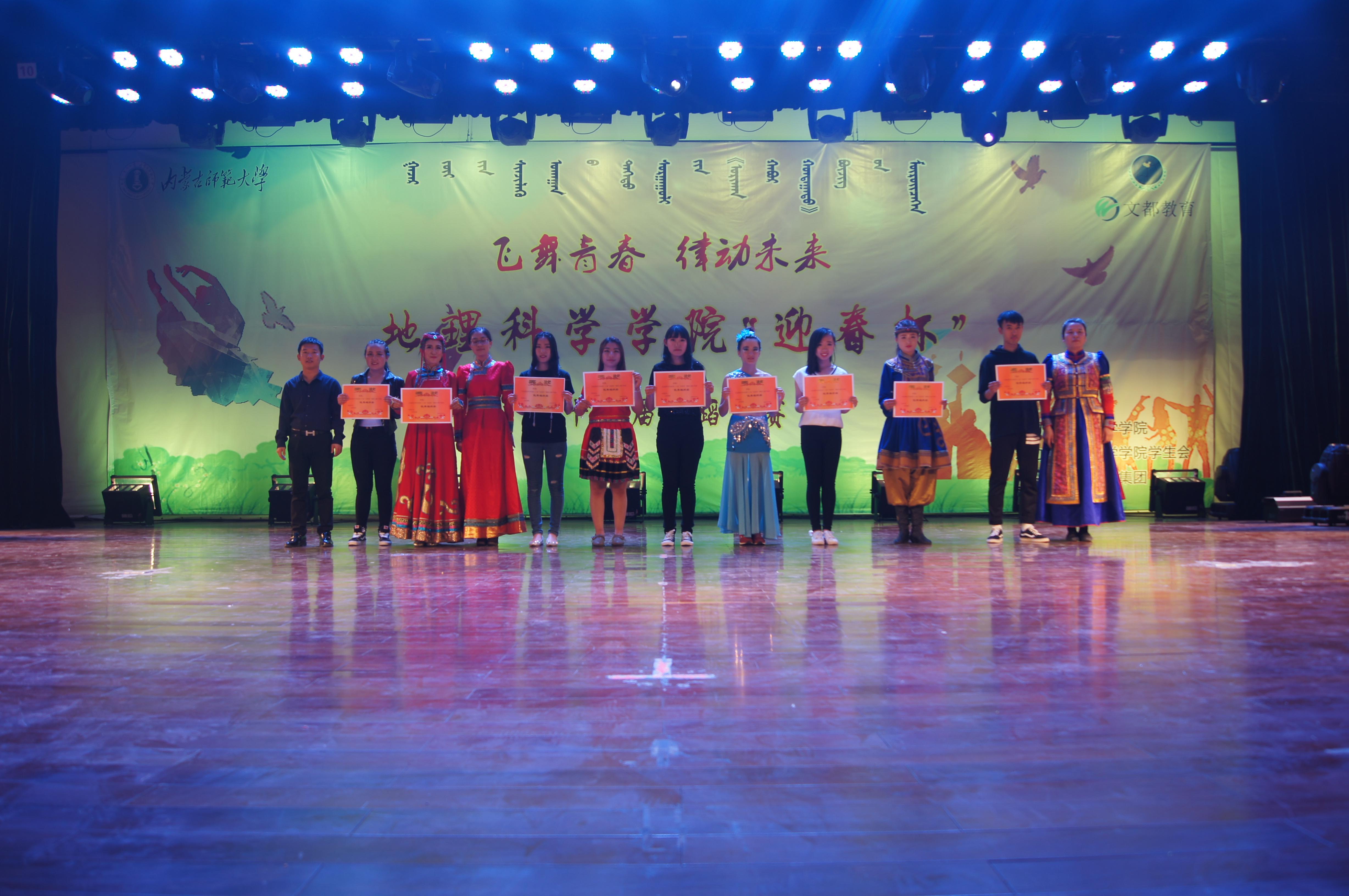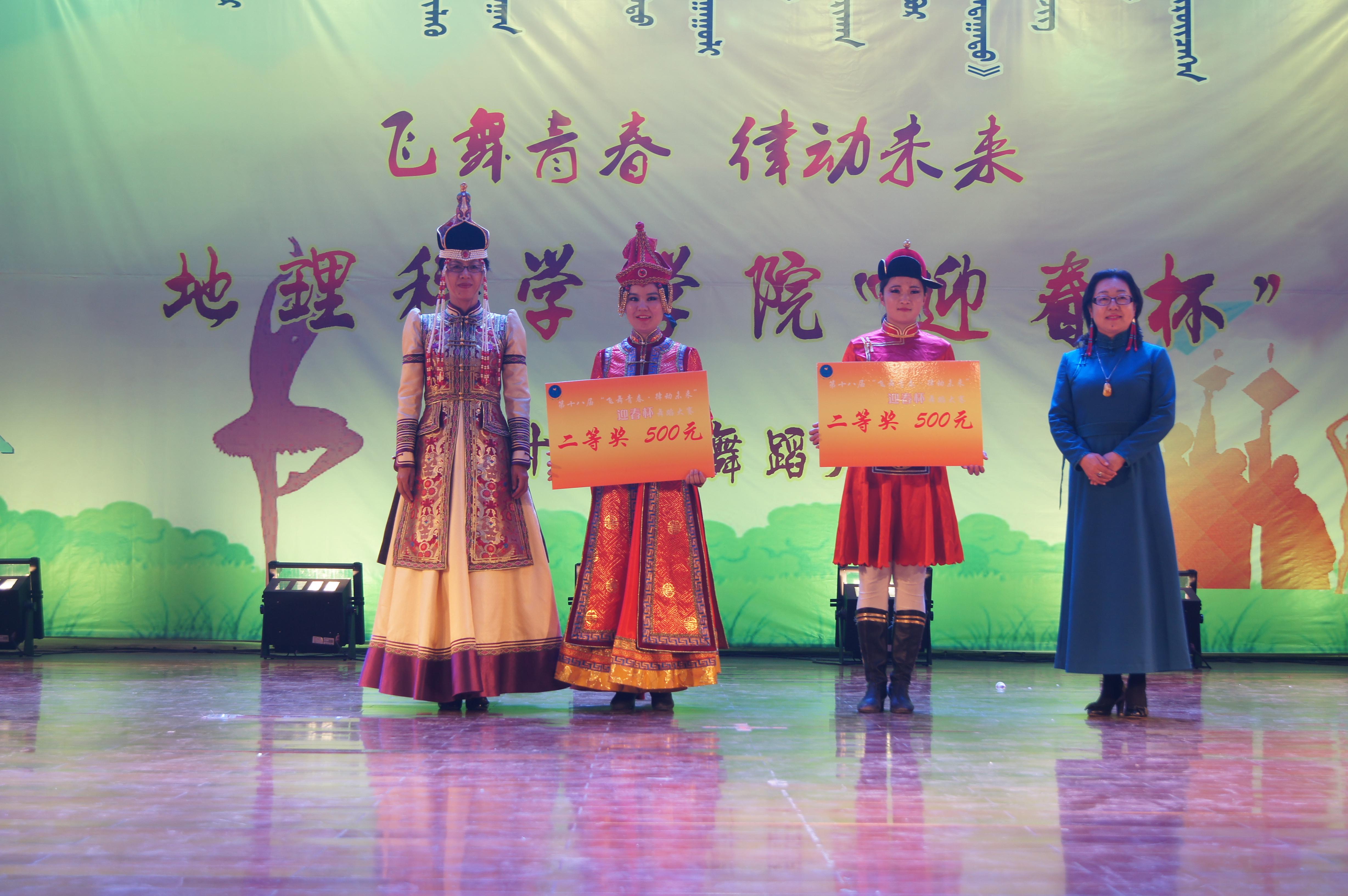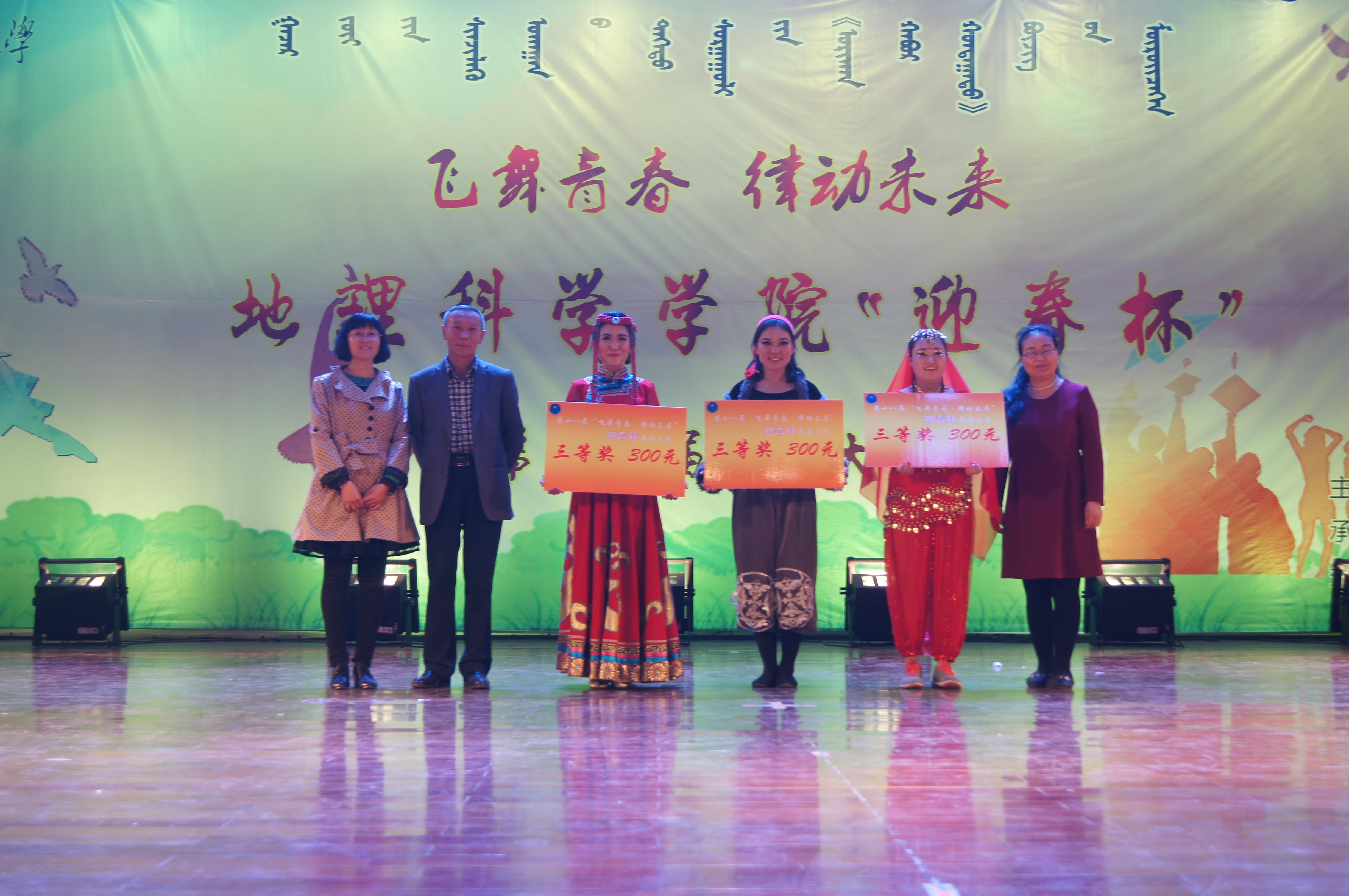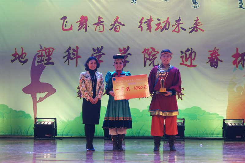 此次比赛经过激烈精彩的角逐,研究生代表队的参赛节目《祈愿》与2015级土地资源管理班的参赛节目《哈特日亚》并列第一名,赢得了迎春杯奖杯和奖金一千元。荣获二等奖的分别是2014级土地资源管理班的《维拉特青年》和2014级地理科学蒙班的《波浪萨吾尔登》,荣获三等奖的是2015级自然地理与资源环境班的《苍狼》、2014级自然地理与资源环境班的《印度风情》、2014级地理科学汉班的《盅碗筷》。