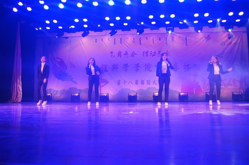 此次舞蹈大赛共有15支表演队伍,近1000名学生观看了整场演出。舞蹈 《佚名》、 《good boy》 、 《卫拉特青年》 、 《crazy high》 等将比赛一次又一次地推向高潮,观众们的呐喊与喝彩声为比赛营造了激动人心的氛围。更有黄晓君老师、那顺达来老师为我们演唱了动听的蒙语歌曲,还有十佳歌手Narlag组合友情出演,为我们演唱了美妙悦耳的《Jammac》。