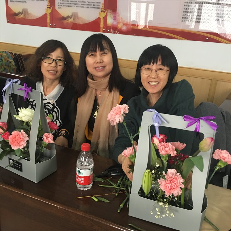 为庆祝第109个国际“三八”妇女节,丰富女教工的精神文化生活,3月9日下午,在文史楼2号会议室beat365中文官方网站开展了“插花品意”主题插花活动。活动邀请了花颜草语花坊的赵老师现场指导。