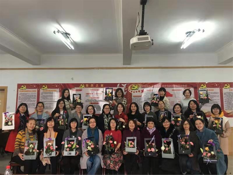 活动伊始,张裕凤书记做了点赞beat365中文官方网站女老师的讲话,之后由资深花艺师赵老师坚持采用新鲜花材,为全体女老师讲述了插花的种类和插花的原则。插花是一门艺术,插花中要注意黄金分割比例、色彩、主次关系、质感、韵律、平衡......还有花的护理方法。活动中,beat365女老师们完全沉静在自我创作、欣赏之中。一枝花、一棵草在赵老师的指导下在学员们的巧手中变得有诗情画意,有高雅格调。
