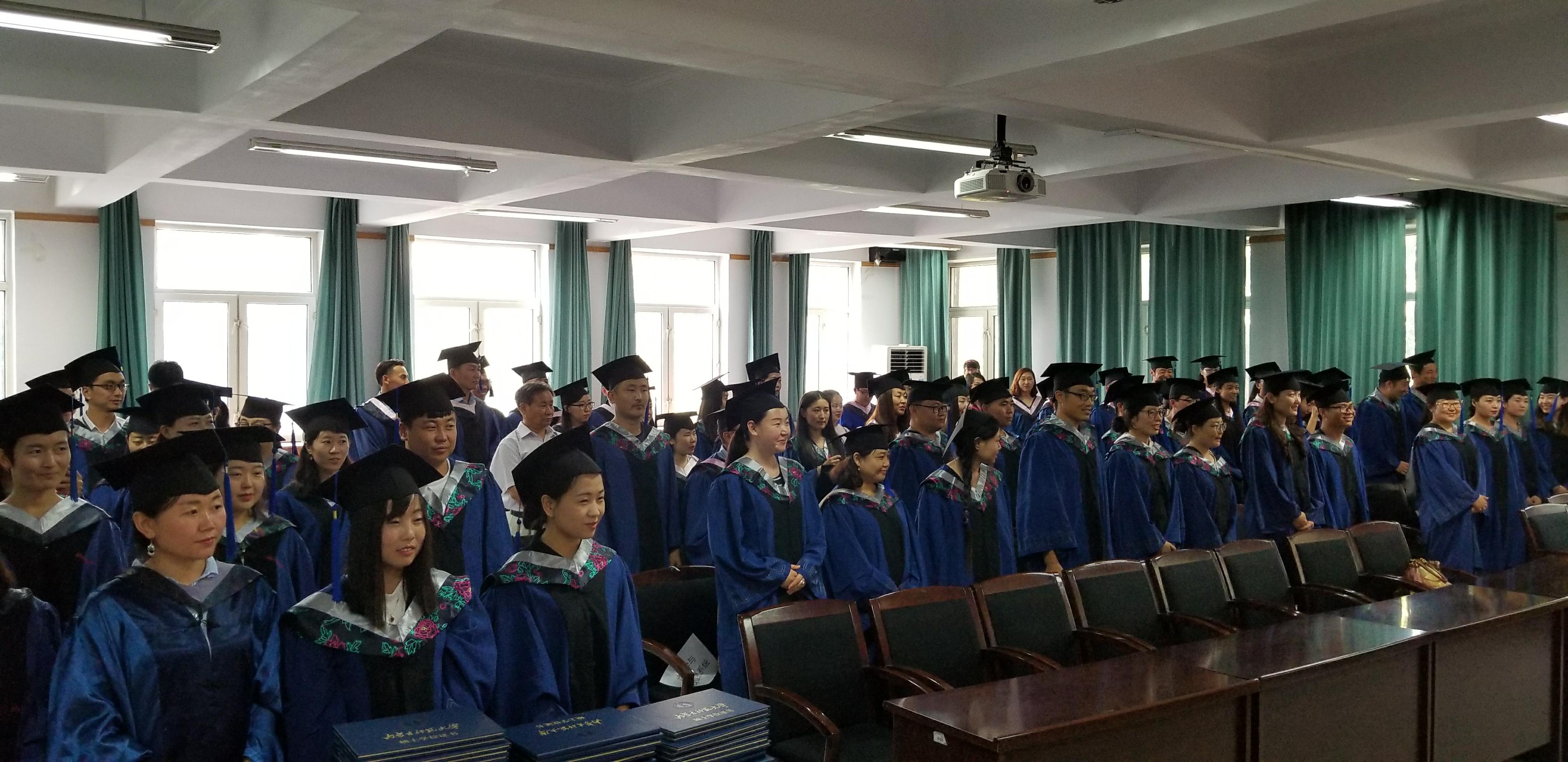 授予仪式上,首先由毕业研究生代表丽娜同学、导师代表苏根成教授发言,其次beat365中文官方网站院长包玉海教授讲话,鼓励研究生同学们继续深造;校党委副书记、纪委书记高云峰研究员讲话,高书记用他的亲身经历激励同学们努力学习,愿他们前程似锦。最后进行了学位授予仪式并合照留念。
