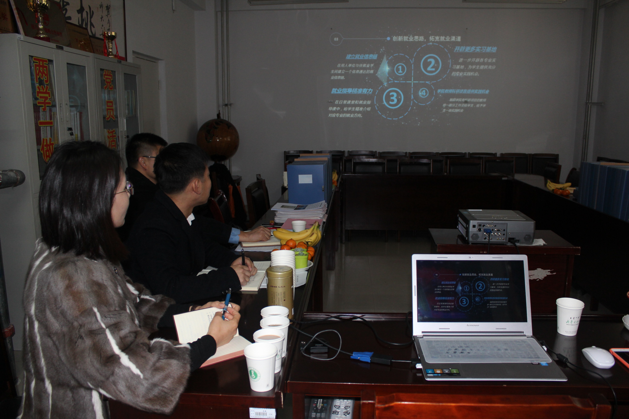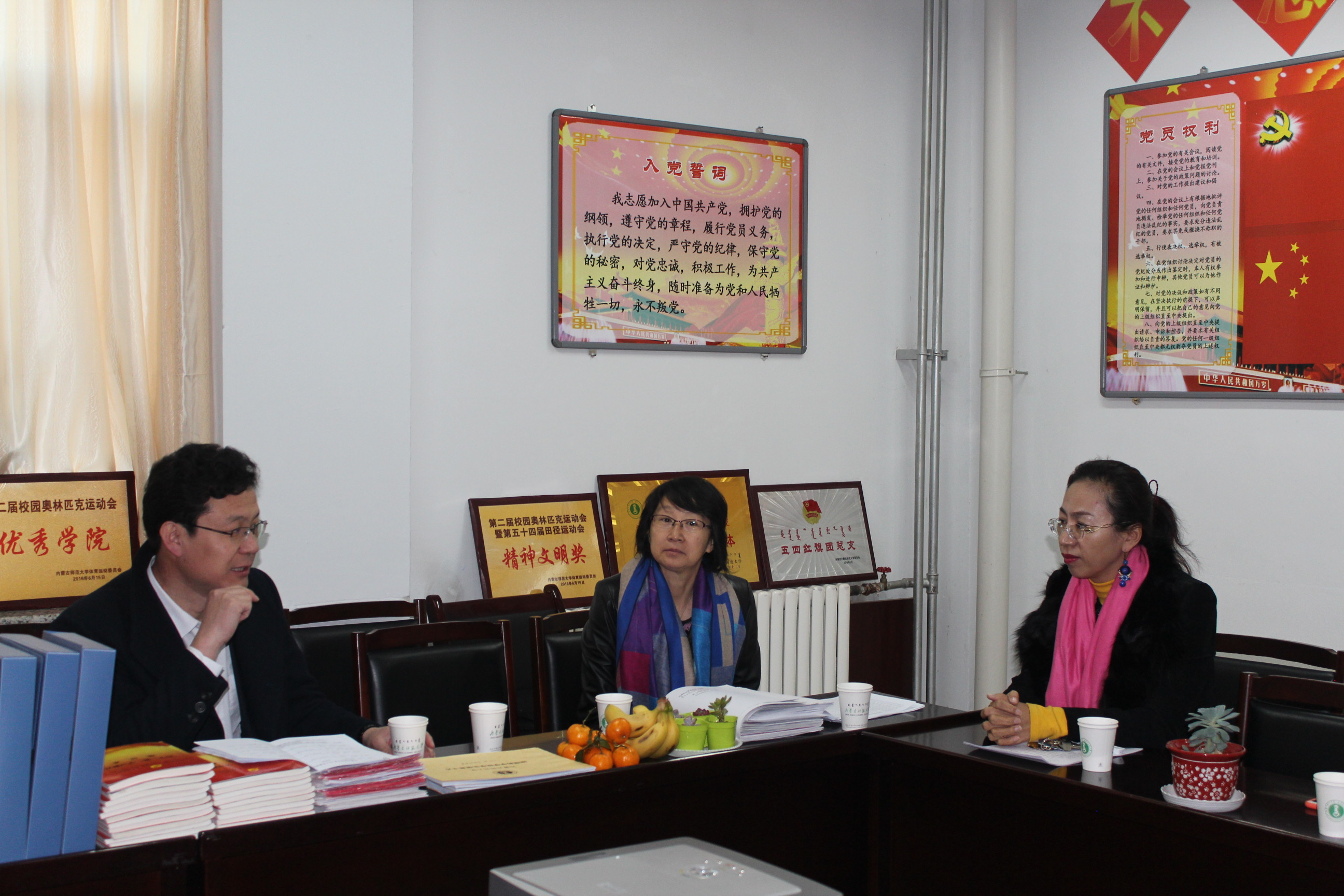 2016年12月6日上午9点,学生就业指导处王志强副处长、学生处资助管理科徐连娣老师、赵相国老师、李婧老师一行来到beat365进行本学年学生工作考核指导工作。beat365张裕凤副书记(主持工作)、李雨薇副书记,胡日查老师,姜亚维老师参加了此次考核工作。李雨薇副书记代表学院进行了汇报总结,主要分为三个部分:学院工作的特色和亮点、存在的困难以及未来工作的规划。汇报结束后,学生处领导对beat365学生工作给予了充分的肯定,并提出了改进和指导意见。