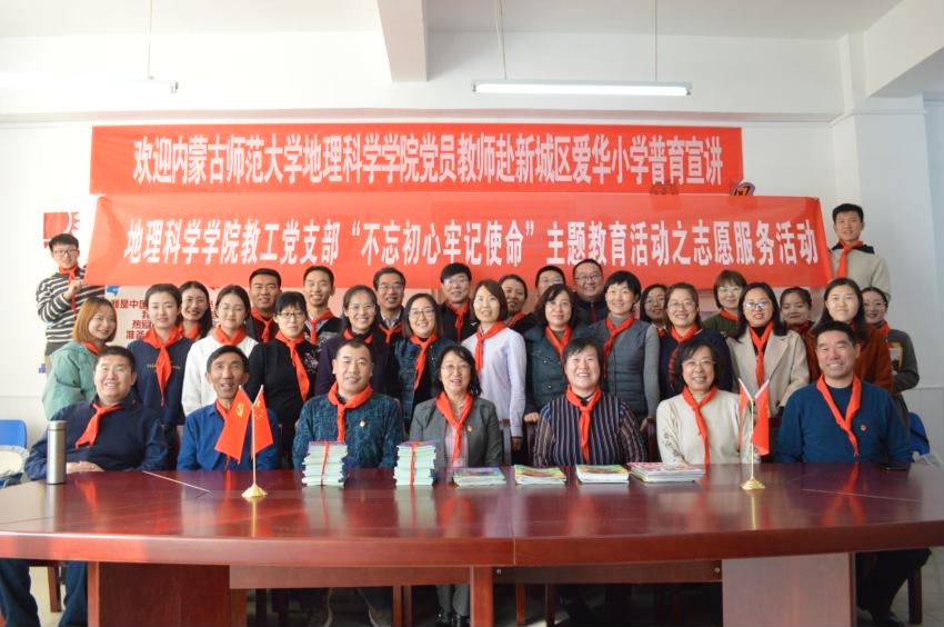 为深入学习贯彻习近平新时代中国特色社会主义思想,扎实推进“不忘初心,牢记使命”主题教育工作,进一步提高全体党员服务意识,2019年11月21日下午14:30,beat365中文官方网站党委组织beat365教工第一党支部、第二党支部教师党员和部分研究生和本科生党员共31人,赴新城区爱华小学进行普育宣讲志愿服务活动。本次活动也是内蒙古自治区团委关爱留守儿童的重要工作内容。