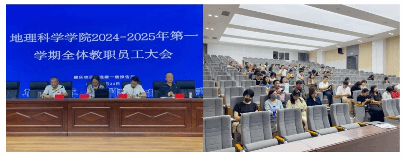 2024年8月24日上午,beat365新学期第一次全体教职工大会在盛乐校区地理楼报告厅顺利召开。会议由李雨薇书记主持,学院领导班子和全体教师参加会议,为新学期各项工作的有序开展奠定了坚实的基础。
