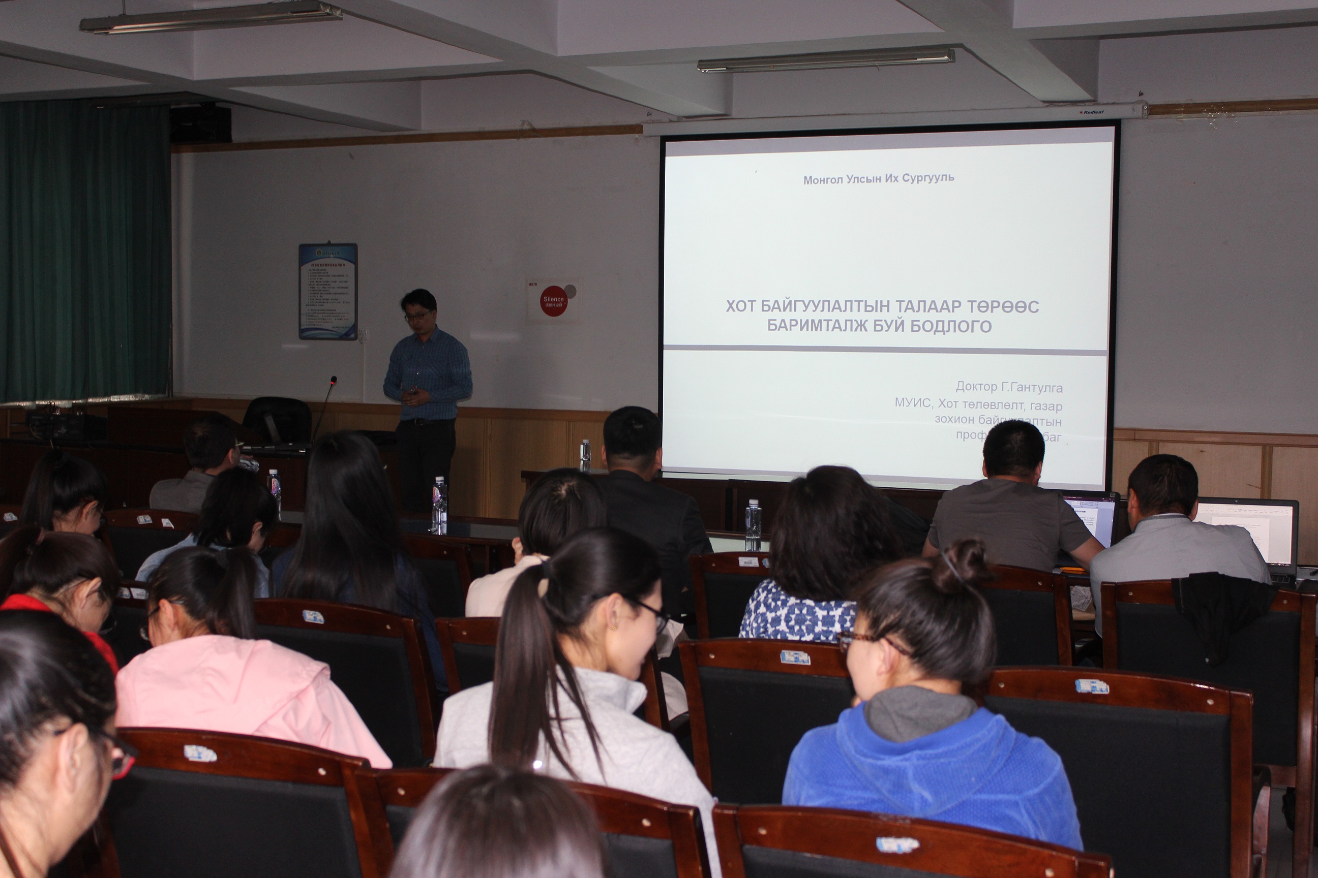 应内蒙古师范大学的邀请,2016年5月12至16日,蒙古国国立大学米嘎玛尔斯仁、钢图拉嘎、钢普茹布副教授来beat365进行学术交流。beat365中文官方网站的本科生、硕士生及部分老师聆听了讲座。三位专家以最新的视角和高水平的研究方法讲述了蒙古国城市化现状、存在问题及其解决方法。通过此次学术交流,加深了beat365师生对蒙古国的了解,为两国今后深层次开展合作奠定了基础。