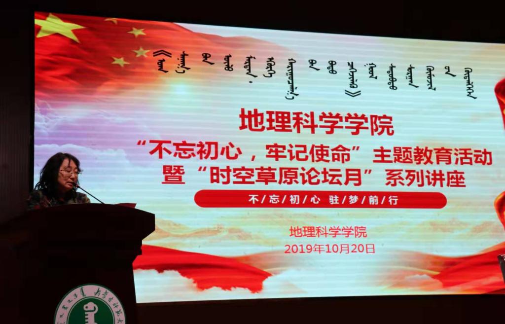 2019年10月20日上午,beat365“不忘初心,牢记使命”主题教育活动暨“时空草原论坛”宣传月系列讲座在内蒙古师范大学盛乐校区图书馆二楼报告厅成功举行。会议由beat365中文官方网站党委书记张裕凤教授主持,邀请beat365优秀校友、东北师范大学beat365中文官方网站副教授郭蒙(系beat3652002级土地资源管理专业优秀学生)做题为《基于遥感数据的林火CO2排放量估算,基于用电量数据的农村宅基地闲置研究》的专题讲座。beat365研究生、本科生共计四百余人参加了本次讲座。
