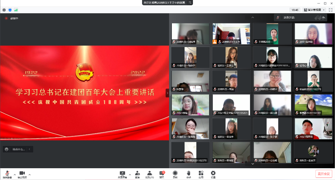 5月10日上午,庆祝中国共产主义青年团成立100周年大会在北京人民大会堂隆重举行。作为新时代的青年,beat365组织全体同学学习了习总书记在建团百年大会上的重要讲话。通过本次主题活动,beat365青年学子深受鼓舞,坚定了用汗水投身祖国建设的理想信念,努力学习先进科学文化知识,切实担负起中国特色社会主义接班人的重任。