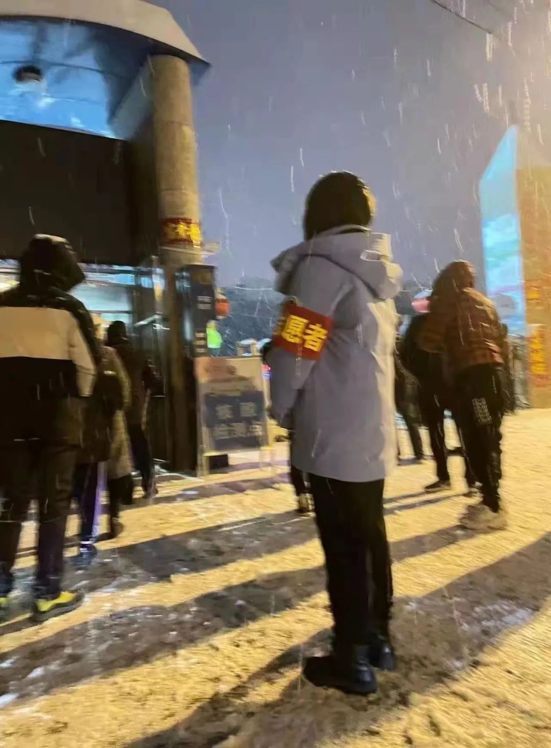 武璐 2021级人文地理与城乡规划班 在内蒙古自治区呼和浩特市回民区工农兵路社区负责秩序维护,引导群众有序排队。
